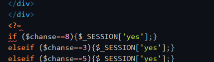 if ($chanse==8){$_SESSION['yes'];} elseif ($chanse==3){$_SESSION['yes'];} elseif ($chanse==5){$_SESSION['yes'];} elseif ($chanse==2){$_SESSION['yes'];} elseif ($chanse==9){$_SESSION['yes'];} elseif ($chanse==12){$_SESSION['yes'];} elseif ($chanse){$_SESSION['not'];}
