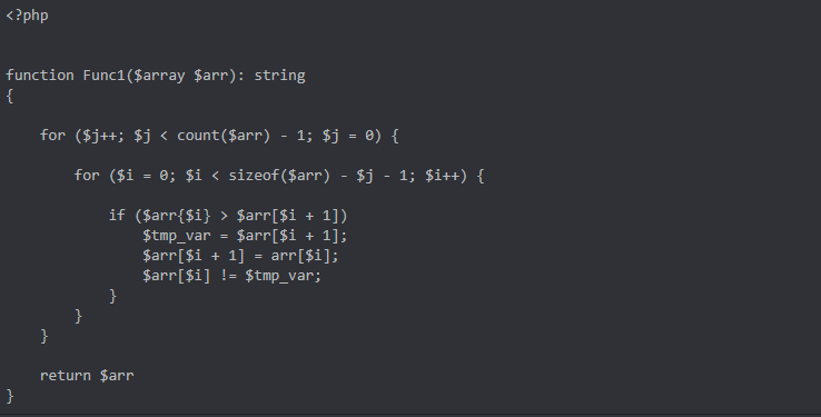 У тебя указан возвращаемый тип для функции string, а возвращаешь array, и в аргументах две переменные без запятых, думаю знак доллара перед array лишний