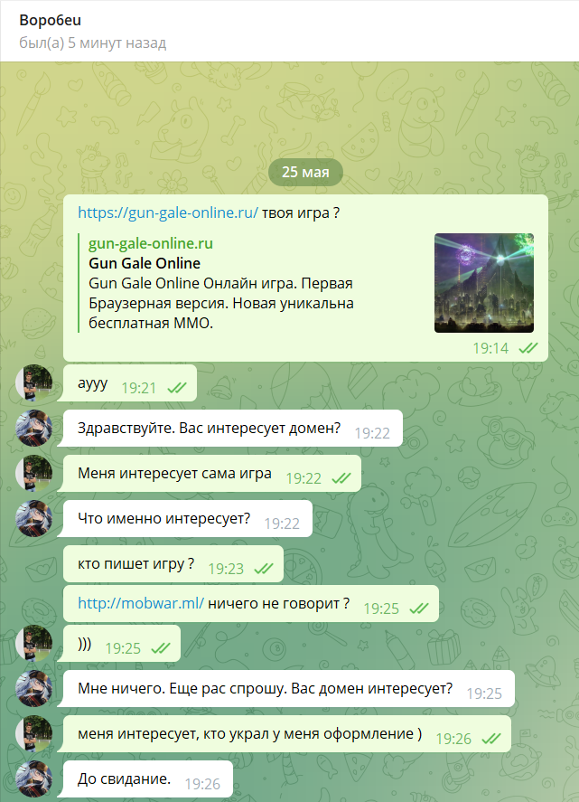 Bopo6eu , тоесть то, что на сглавной игры где мое оформлене ссылка на твой телеграм с продажей домена это ничего не значит ?