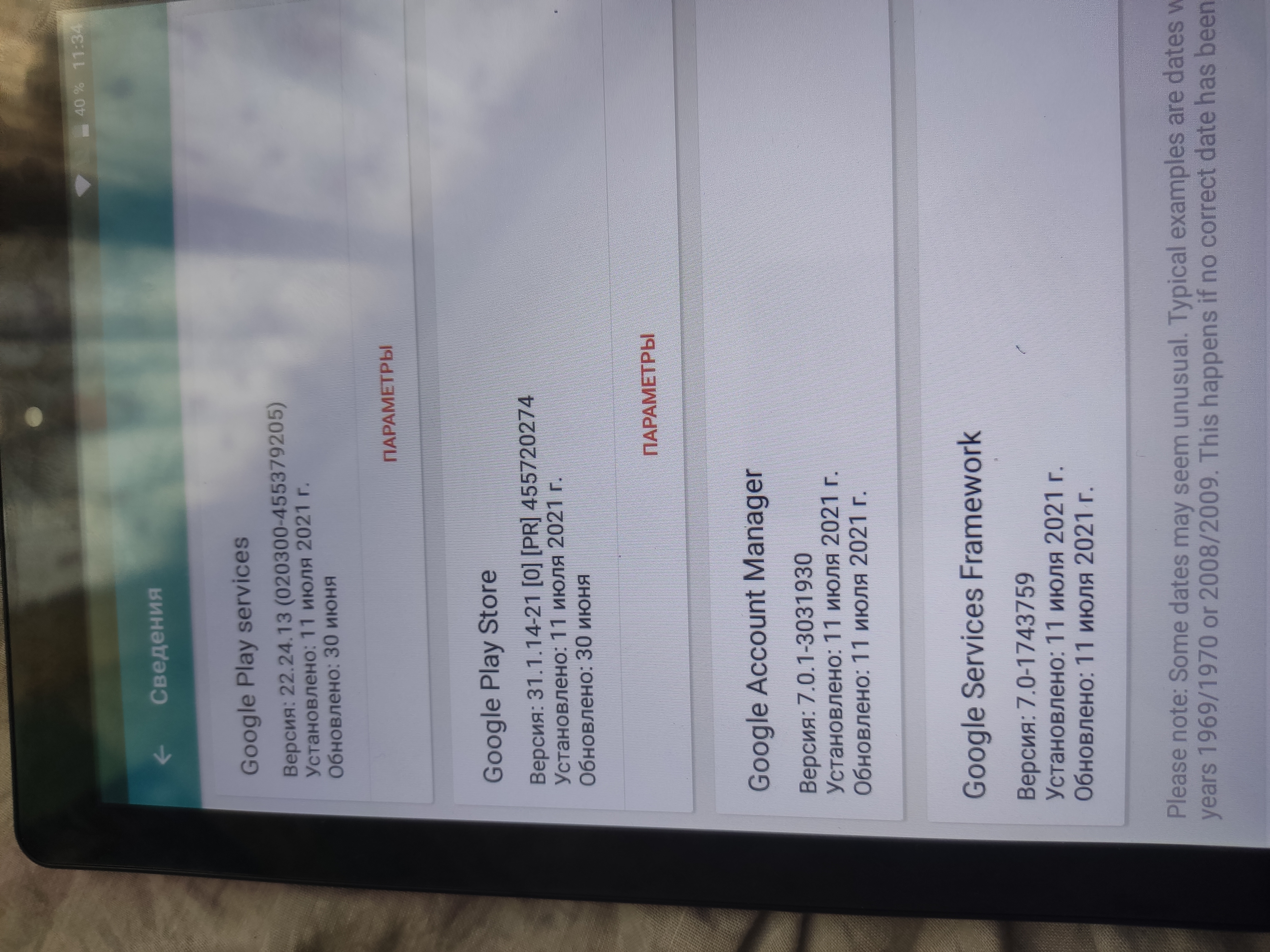 В самом планшете пишет андроид 7,и ещё google services framework пишет что на планшете он где то есть но его нету нифига(((