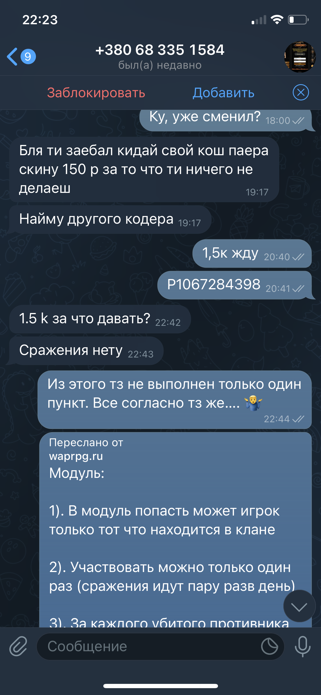 В чем я не прав? Я потратил своё время, брльшая часть тз была сделана. Заказчик нахамил и сам отказался от моих услуг, оплачивать то что сделано так же отказался. Какие вопросы по поводу доски?