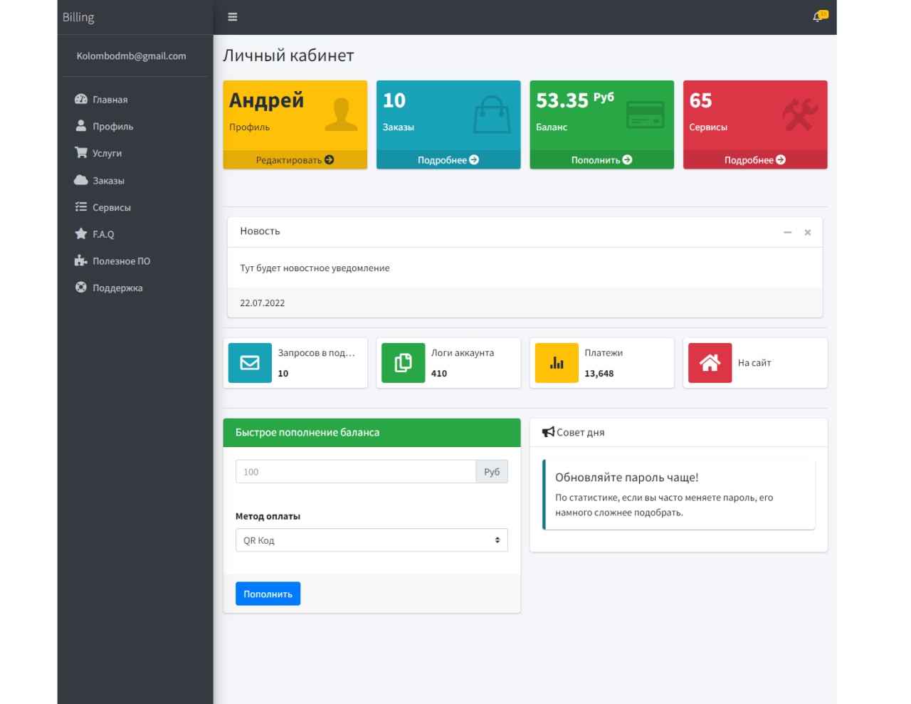 Тестировать нужно будет исключительно клиентскую часть биллинга.