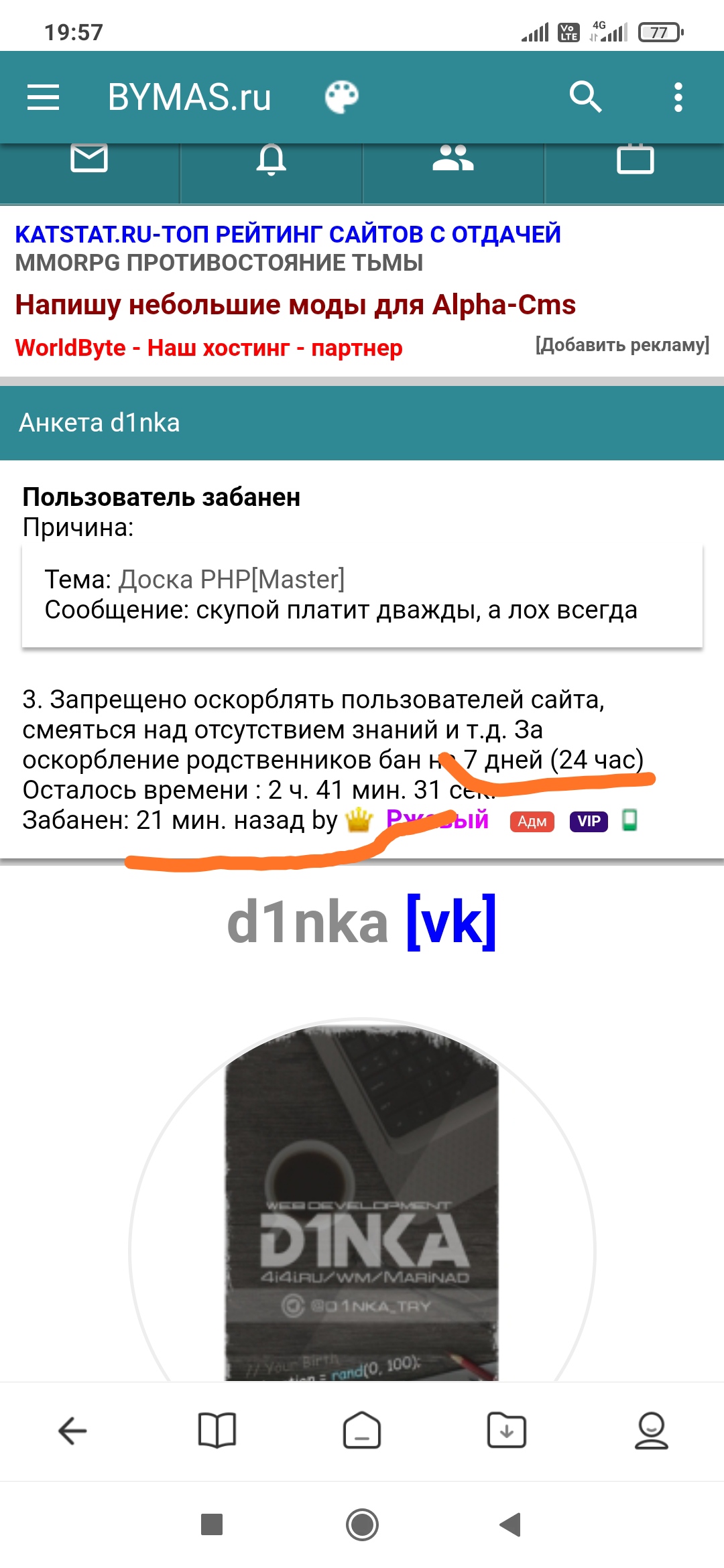 Причина: Повесил на доску позора