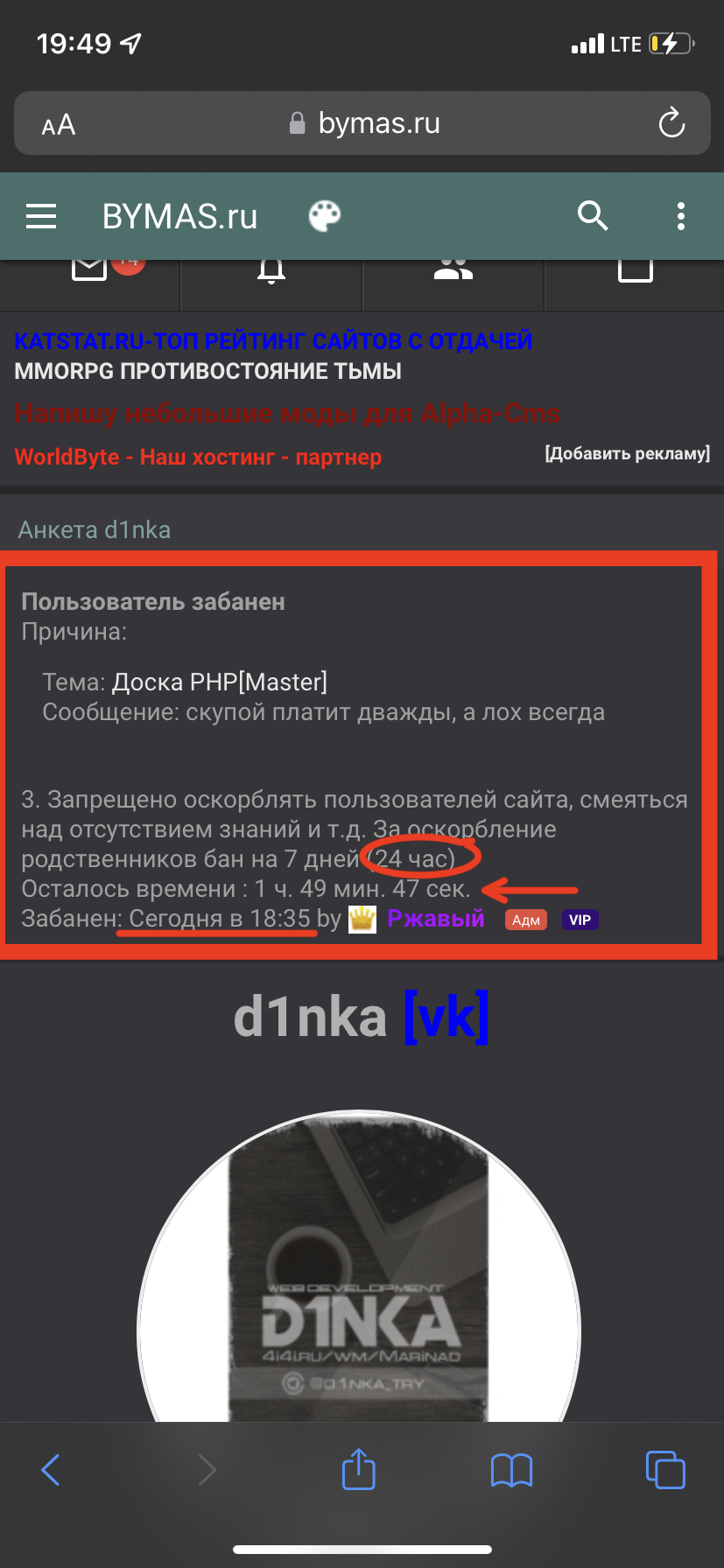 Посмотрите мои истории банов, и мне как-то всё-равно на бан)