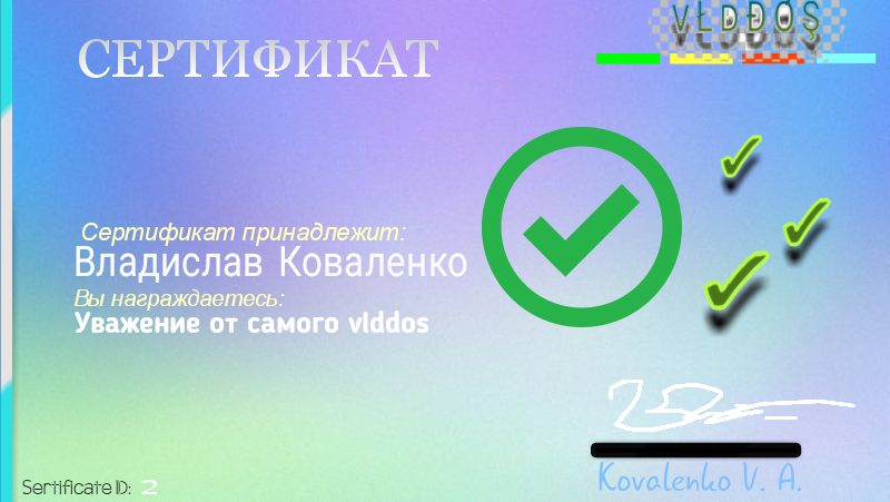 Всем привет сегодня разыграя 5 сертификатов уважениея от меня условия: Потсавить лайк и написать vlddos крутой очень итоги завтра