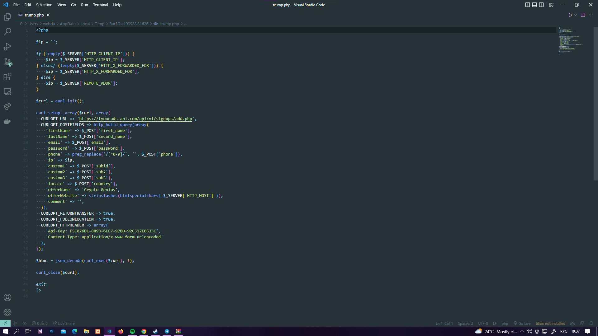 я просто когда работал с апи, обычно делал запрос с данными по апи ключу на сервера и получал ответ... Дичь какая то?