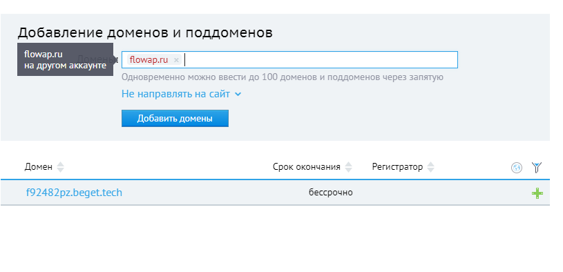 если на добавляется через панель, то должна быть возможность запарковать его на техдомен, который уже выдан