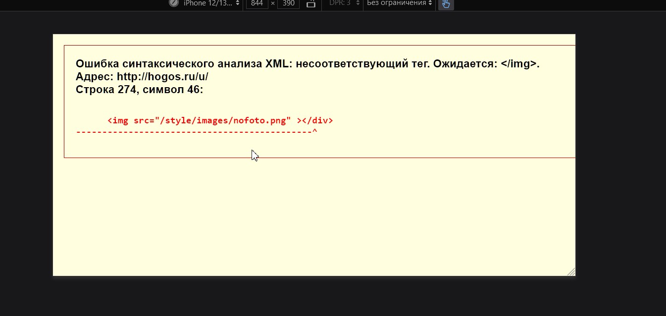 выдает ошибку XML Ошибка синтаксического анализа XML: несоответствующий тег. Ожидается: </img>.