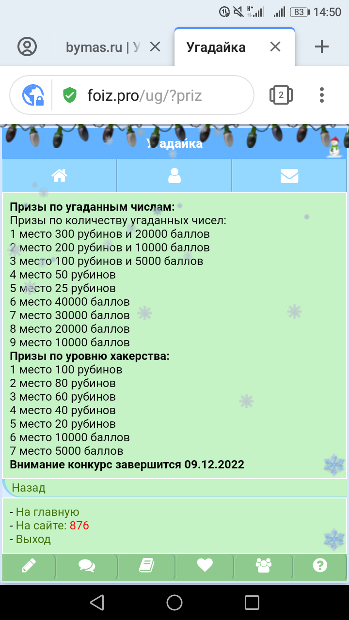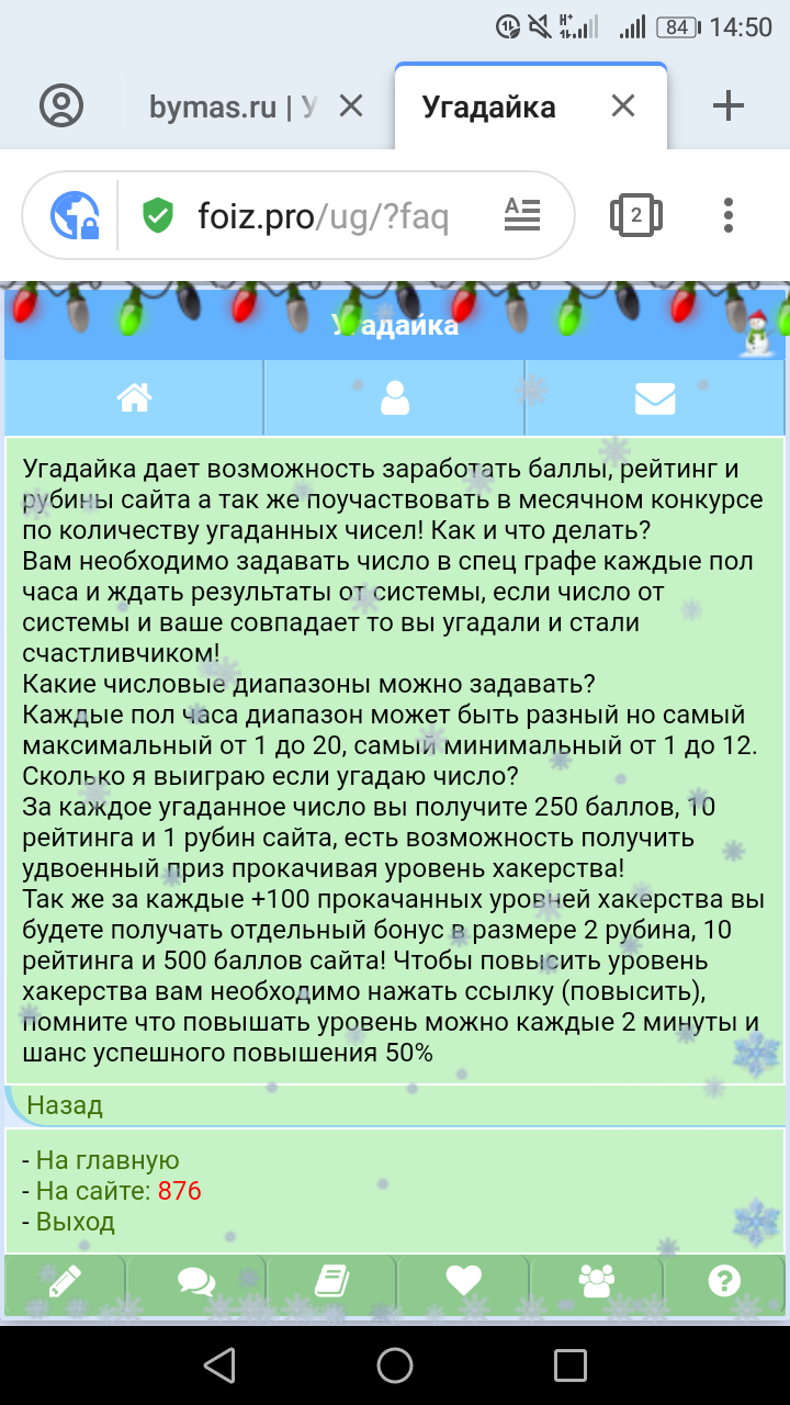 Если пользователь угадывает число, то ему на счет перечисляется призовой фонд, указанный создателем игры. На счет создателя зачисляется сумма, набравшаяся за оплату попыток голосования. Если игра завершается, то создавшему игру приходит уведомление в почту о завершении и количестве баллов, набравшихся в результате оплаты голосов участников. Игра завершается автоматически. Игра только для авторизованных.
