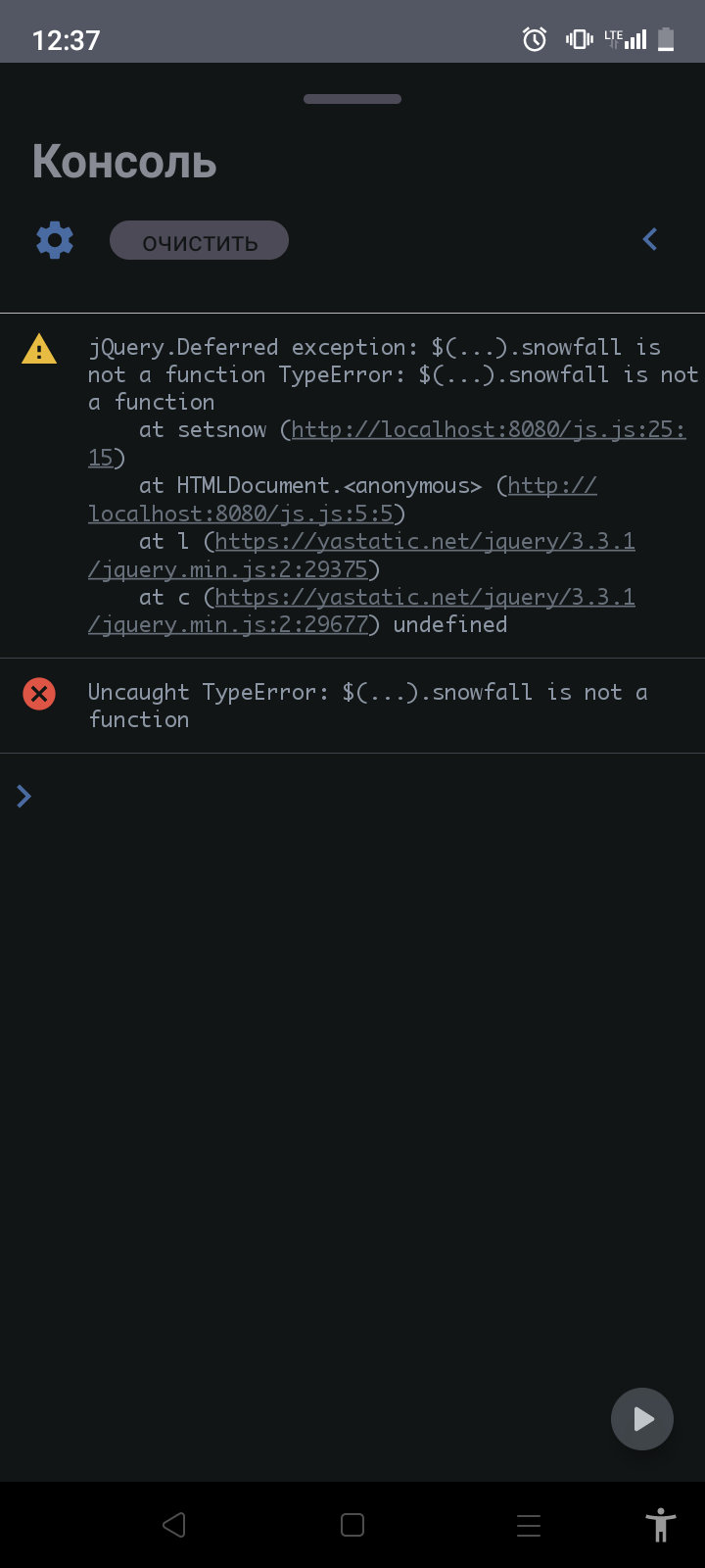Короче хочу запилить в хтмл файл снег, но выдает ошибку с библиотекой, подключал выдает ошибку что на скрине, Сам скрипт брал отсюда https://codepen.io/Imapo/pen/WRbppN