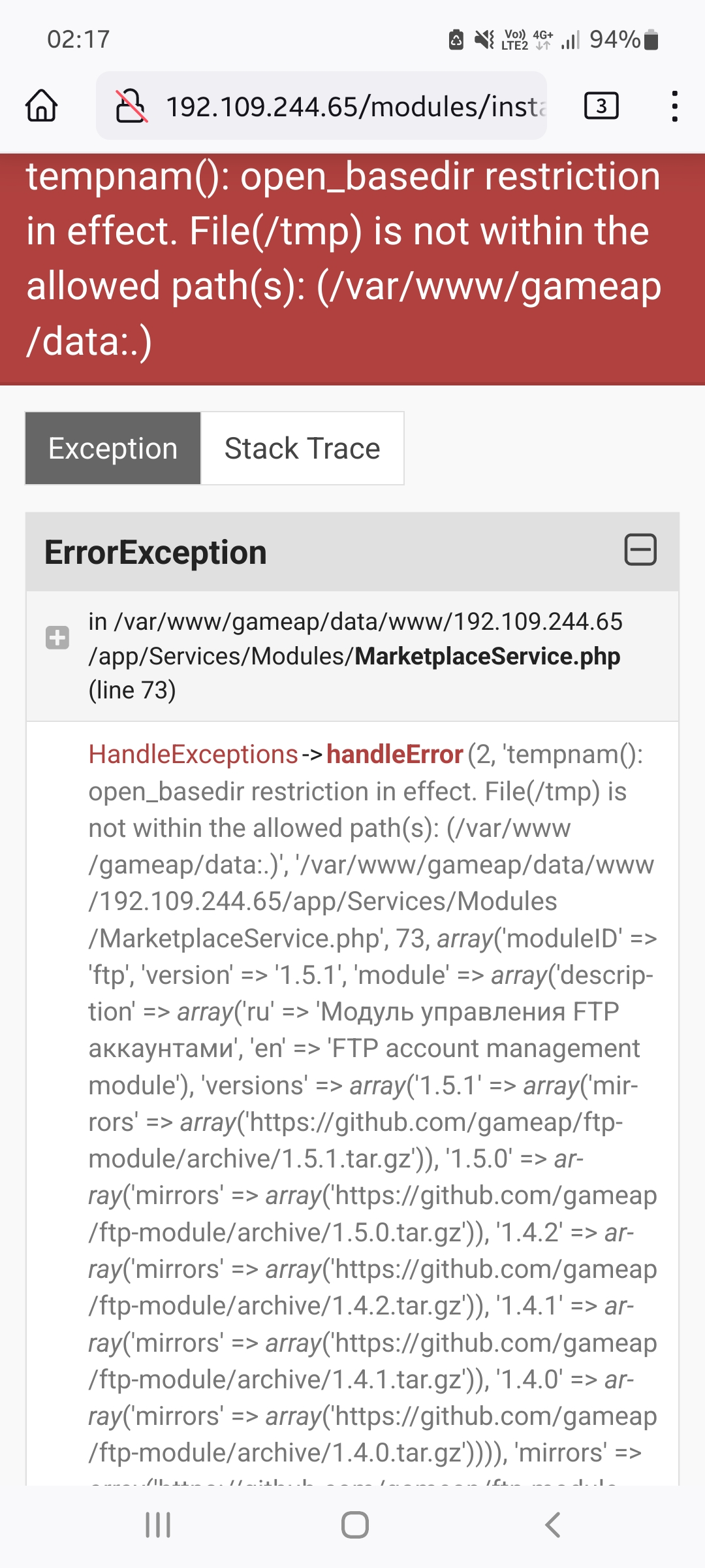 Создатель gameap говорил папки не хватает, а в php.ini > open_basedir = /tmp