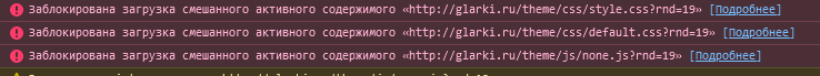 Заблокирована загрузка смешанного активного содержимого «