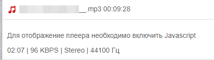 Доброго времени суток, вообщем такая проблема. Посде добавления музыкального файла, пишет "Для отображение плеера необходимо включить Javasсript", что я уже только ни делал, не хочет отображаться и всё тут. Кто сталкивался с такой проблемой и решил её?