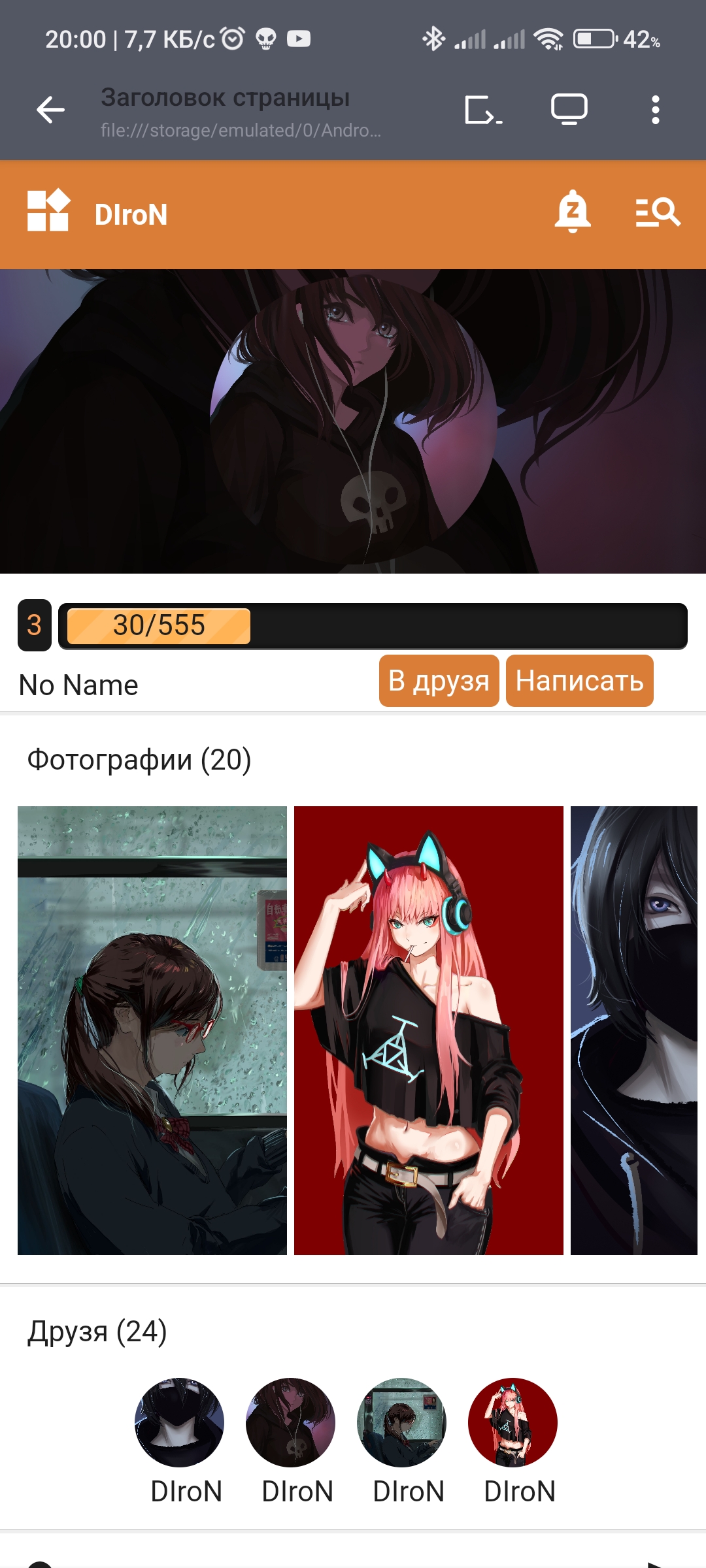 Кнопки "В друзья" и "Написать" можно сделать на пикселей пять больше, а также сдвинуть их ближе к правому краю, сам блок с кнопками и никнеймом расшрить по высоте, чтобы был отступ от прогресс-бара и следующим блоком с фотографиями, фон прогресс-бара можно сделать посветлее (та часть что темная)