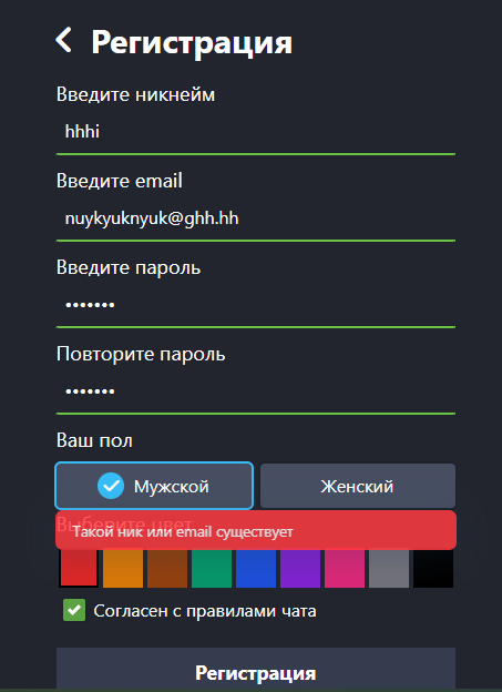 вот даже любой ник ввожу ы несуществующий емайл и всеравно пишет