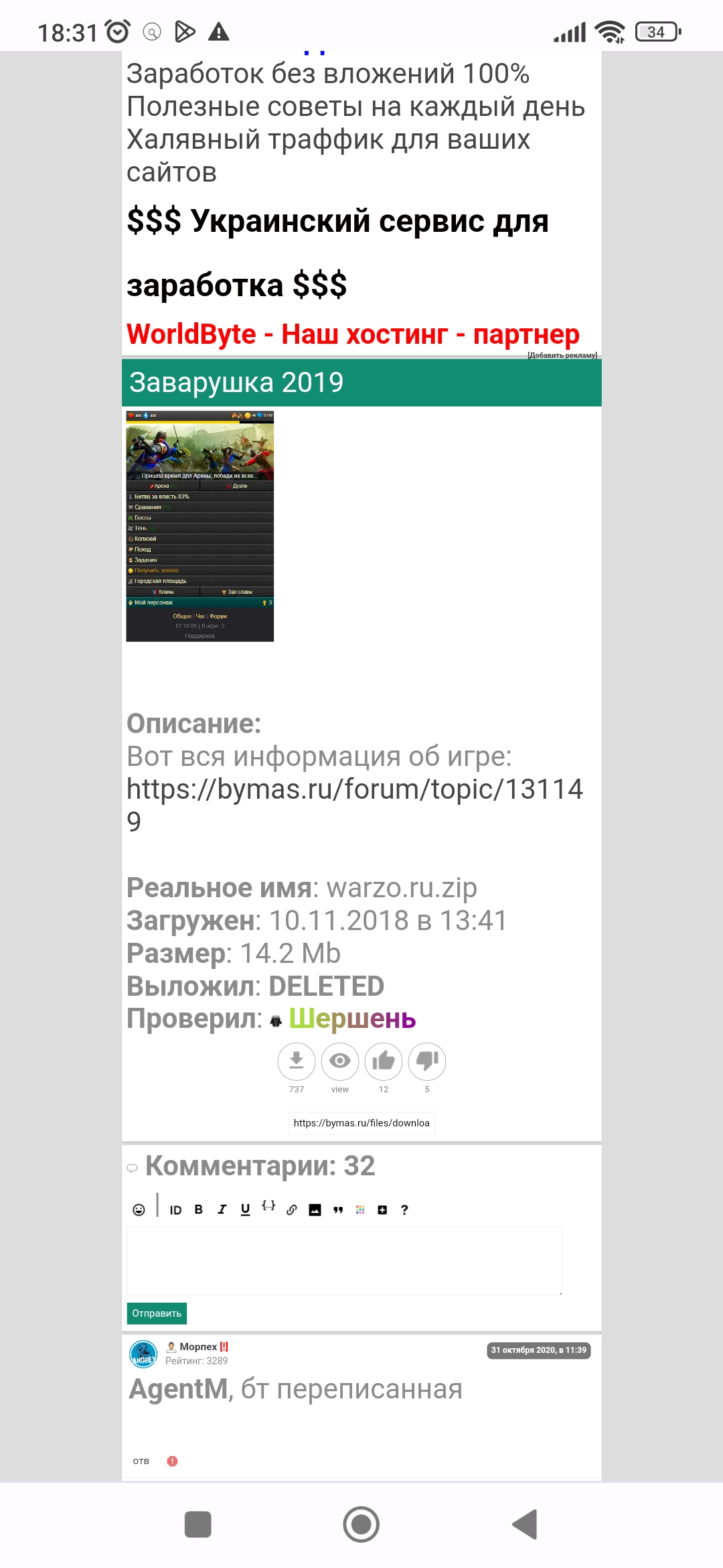 Импортни ссылкой https://bym.guru/files/downloads/2/133/77066/warzo.ru.zip