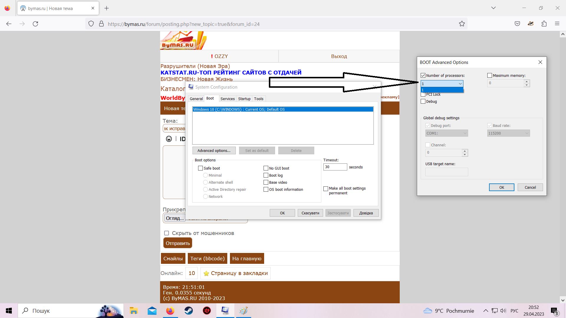 Если при загрузке в меню Boot Advanced Options доступен только один процессор, возможно, ваша операционная система не настроена для использования нескольких процессоров. Вот несколько возможных причин и решений: