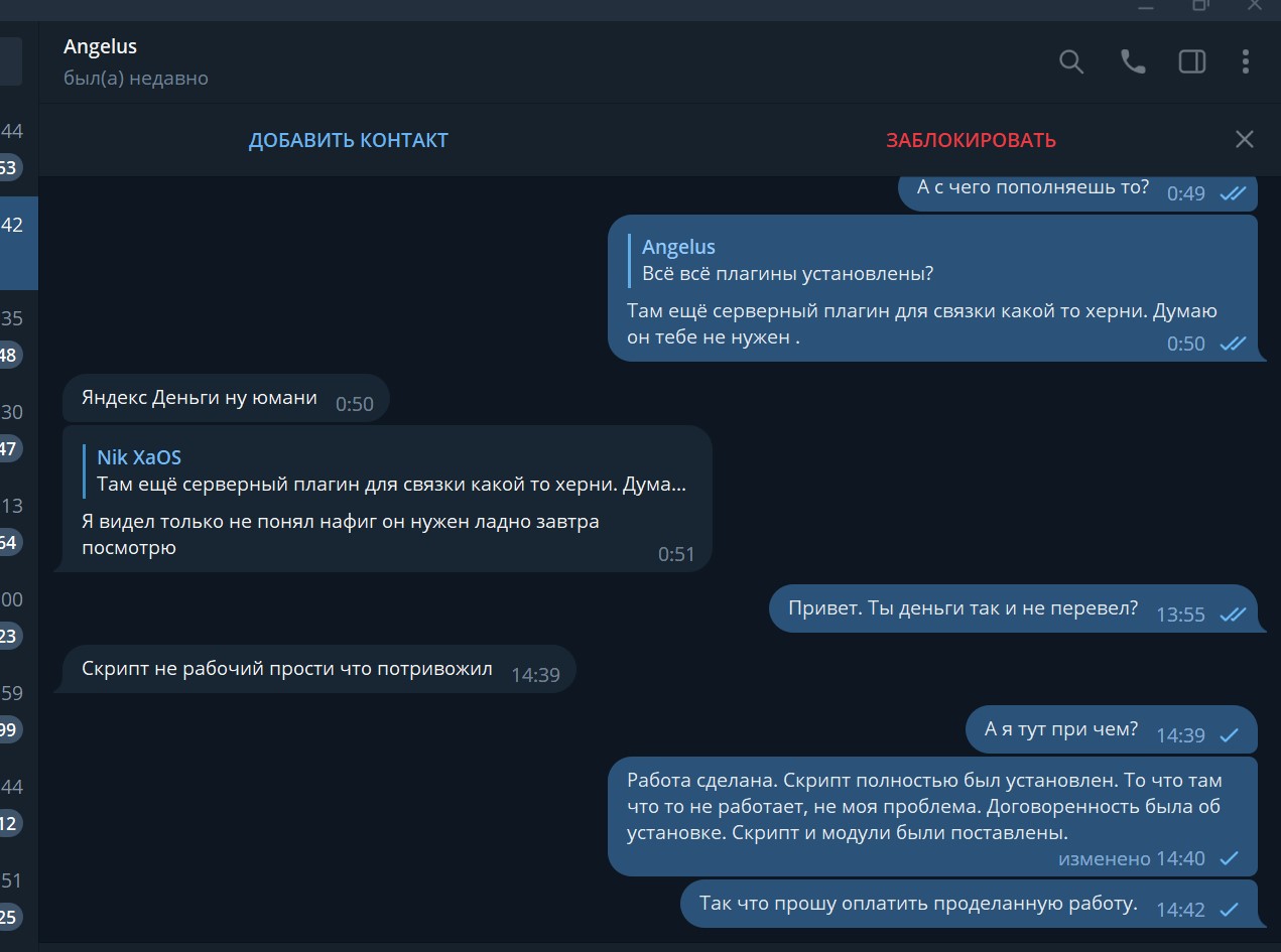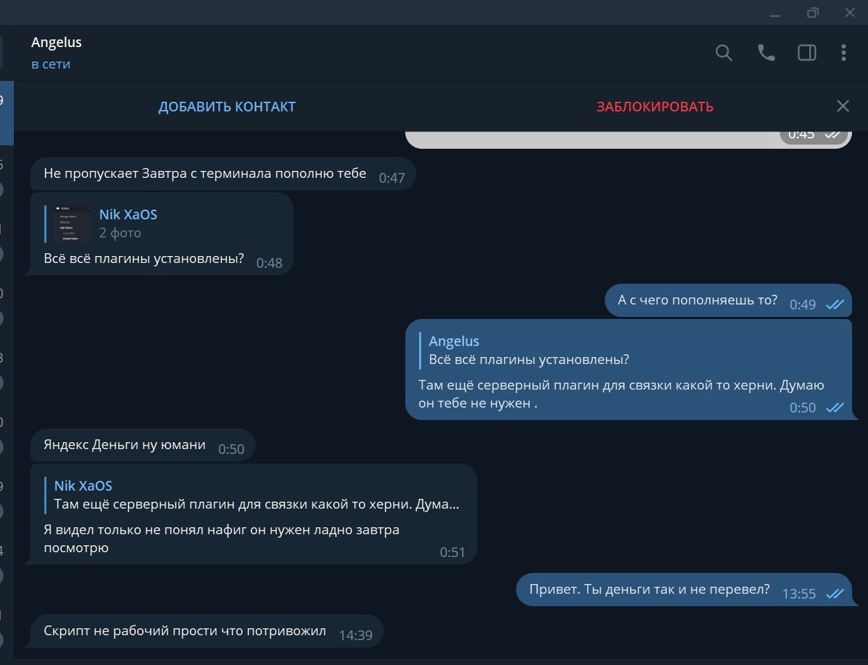 Сегодня ночью ему был установлен заявленый скрипт AVS Adult Video Script. Оплату так и не получил. В телеге молчит. Ждем.