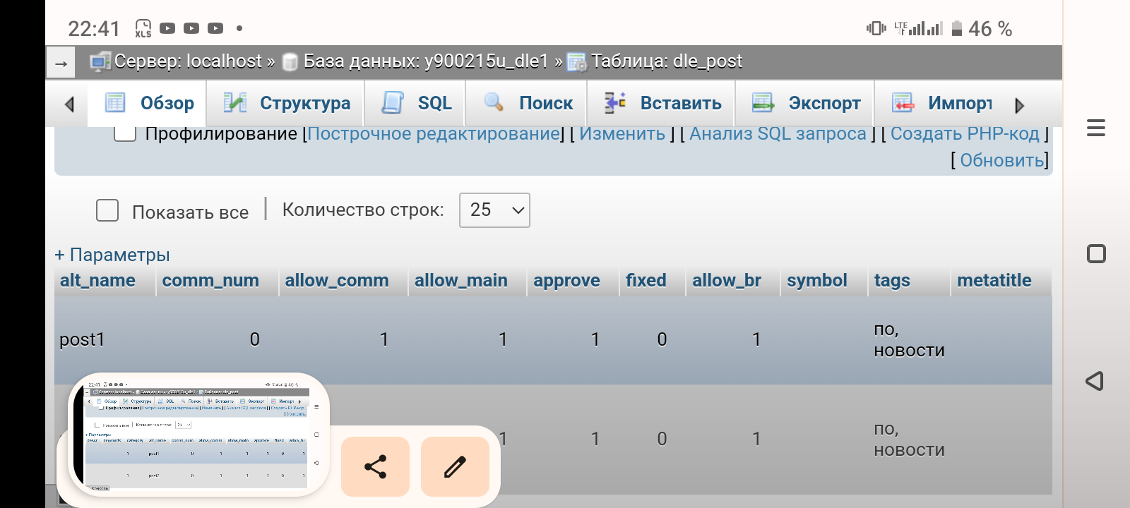 mysql_query("INSERT INTO `dle_post` (`autor`, `short_story`, `full_story`, `category`, `date`, `xfields`,`title`, `descr`, `keywords`, `alt_name`, `comm_num`, `allow_comm`, `allow_main`, `approve`, `fixed`, `allow_br`, `symbol`, `tags`, `metatitle`) VALUES('admin', '$value', '$value', '1', '2023-02-05 09:43:56', ' ', 'test', ' ', ' ', '$value', '0', '1', '1', '1', '0', '1', ' ', ' ',' ',)");В Базе данных префикс dle, а именно таблица. Как написали посте №7. Во-первых. Во-вторых, пустые значение SQL не примет.