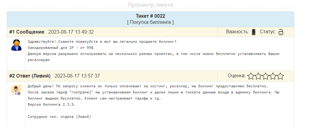НЕ СМЕШИ...))) "пользователь довольный" - ну понятно что ты только один в биллинге, или обманул соседа тот зарегистрировался. Дружише иди хостингом занимайся, а то вдруг я к тебе перееду если там биллинг заблокируют, видь у тебя все надежно на хостинге.)))