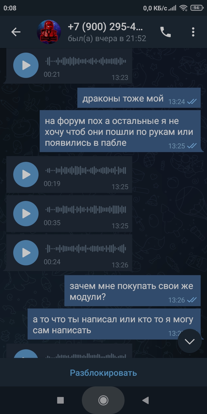 вот скрин где я написал ему что не хочу чтоб он скинул мои скрипты в пабл