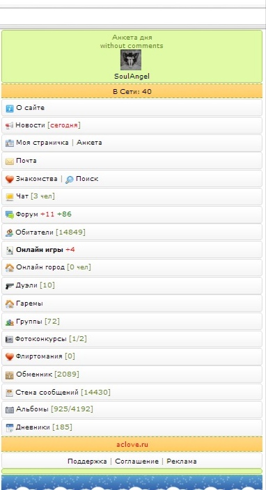 Чет дали движок та не то, на спейсе тоже нет aclove