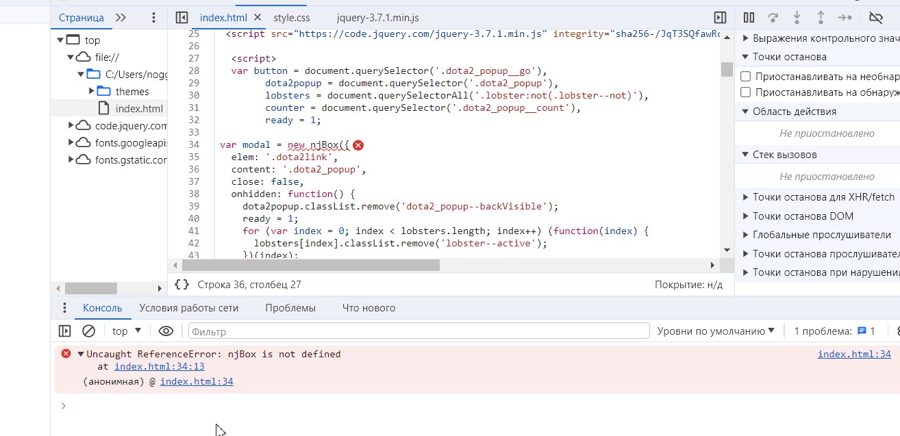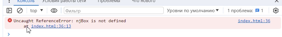 выдает ошибку Uncaught ReferenceError: njBox is not defined