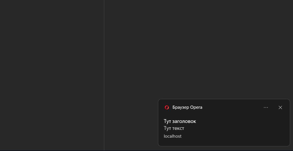 Notification.requestPermission(function(permission){ ///permission = granted значит доступ разрешен }); var notification = new Notification('Тут заголовок', { body: 'Тут текст', dir: 'auto' } ); ------