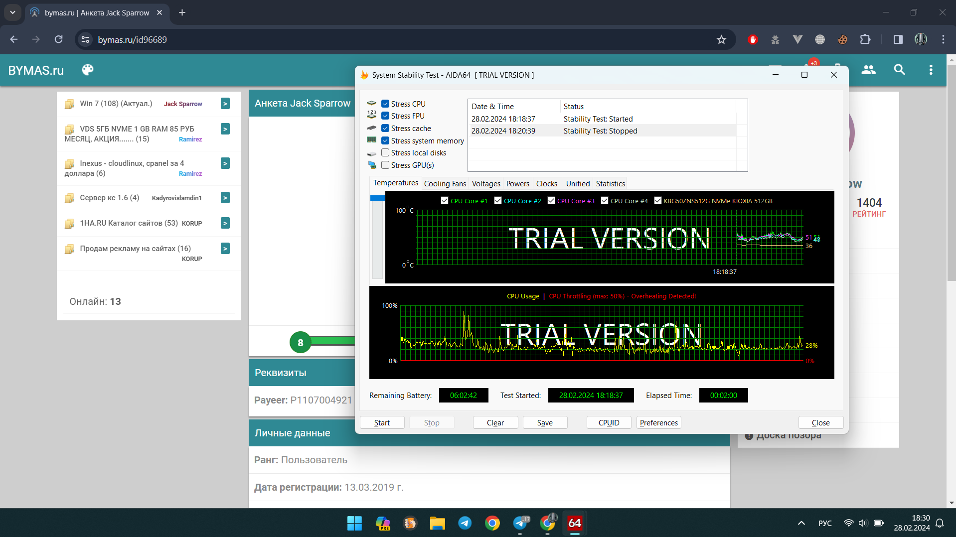 Хотя в плане троттлинга я могу и ошибаться, да если начать стресс тест, то он будет изначально, но по факту ноут так никогда не загружается. Возможно это связанно из за того что я частенько сижу на питании от АКБ, по этому и троттлит.
