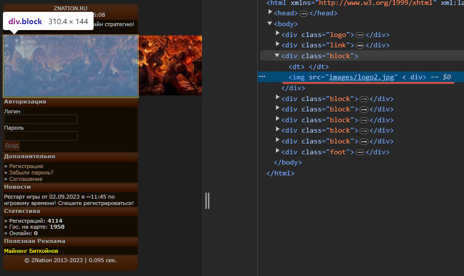 <!-- Твой код --> <div class="block"> <dt> </dt> <img src="images/logo2.jpg" <="" div=""> </div> <!-- Исправленный код --> <div class="block"> <dt></dt> <img src="images/logo2.jpg" style="width: 100%;"> </div> <!-- Либо с использованием класса (рекомендую использовать его) --> <div class="block"> <dt></dt> <img src="images/logo2.jpg" class="banner"> </div> <!-- В /style/1.css пропиши --> .banner { width: 100%; }
