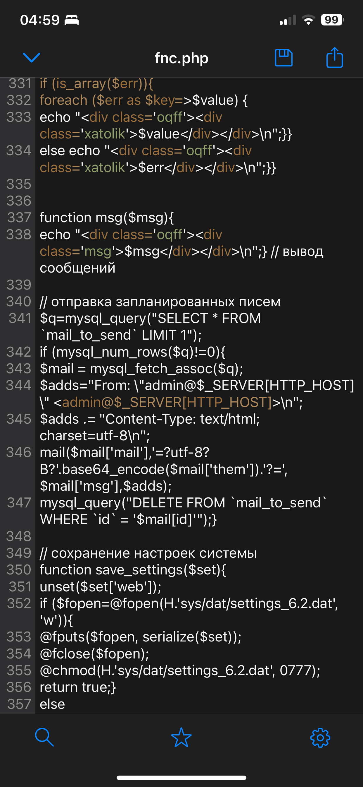 Включи интепретатор ошибок, и посмотри.