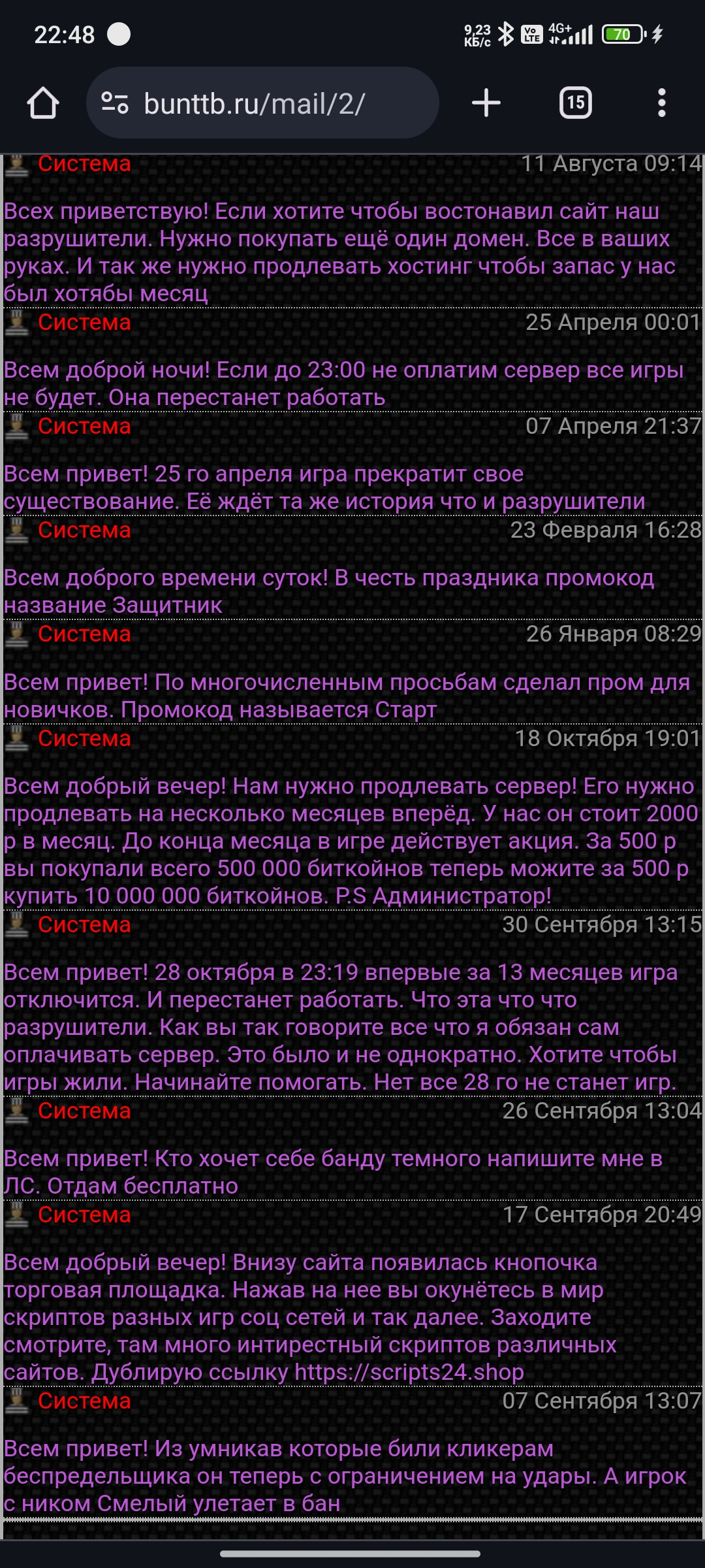 Оценка сайтов | Возвращение бунттб