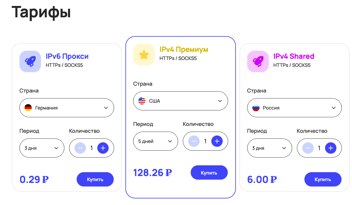 Вы можете купить дешевые прокси от одного IP на несколько дней, чтобы попробовать наши прокси, проверить их работу и убедиться в качестве.