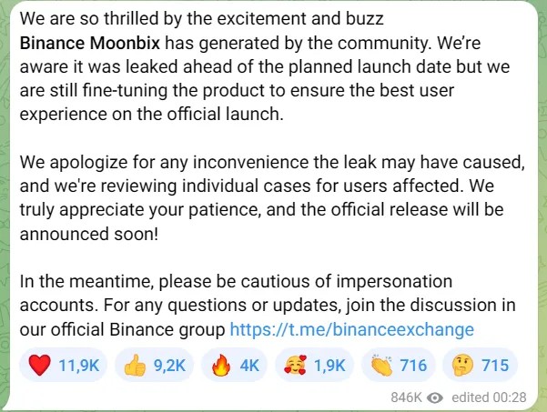 Binance же выкатили пост, что им жаль о том, что слили в общий доступ эту таполку и просят воздержаться от игры, так как все равно сбросят прогресс.