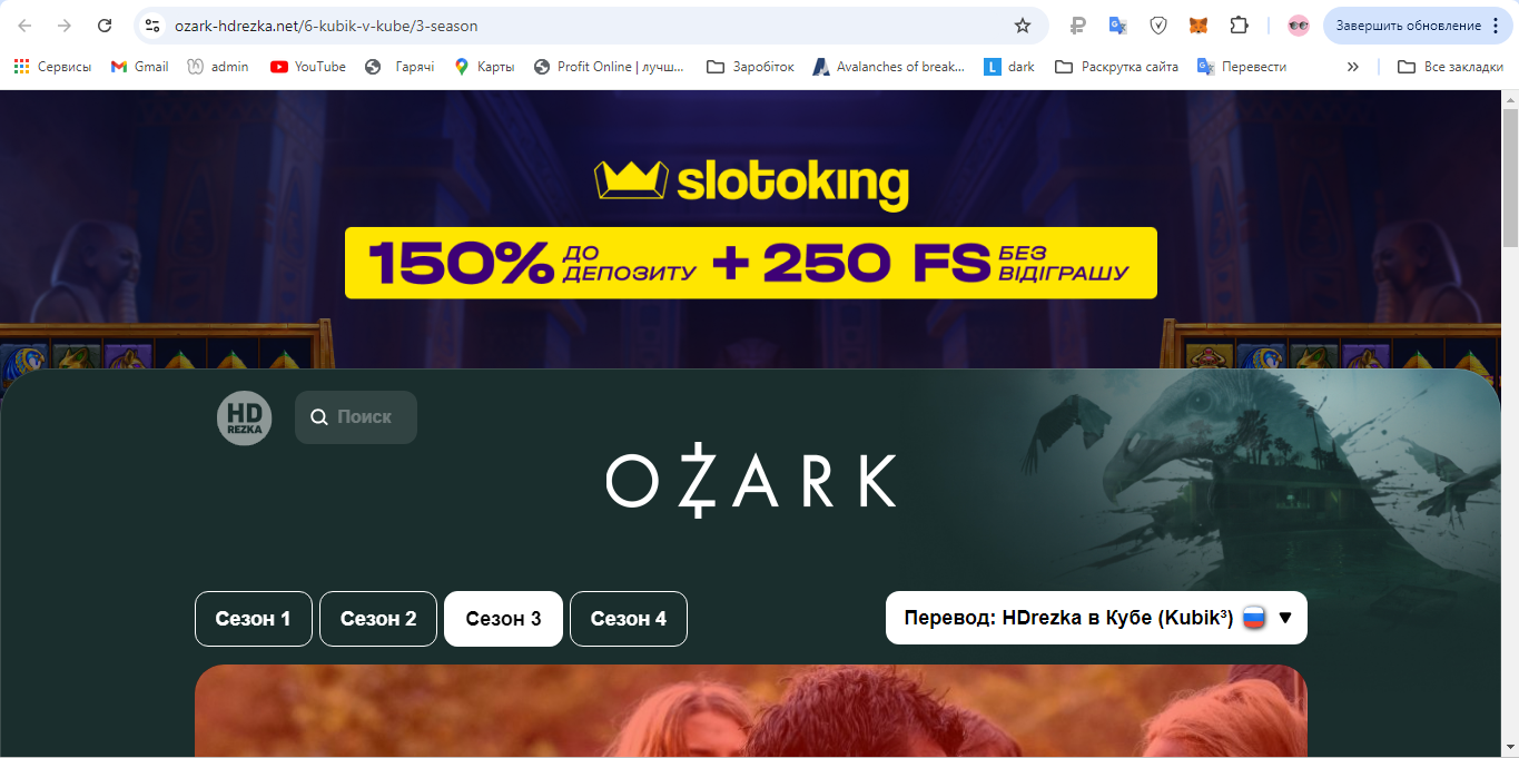 Либо скачай приложение Zona на ПК, там есть Озарк с 1 по 4 сезоны в озвучке, только называется Hdrezka в Кубе.