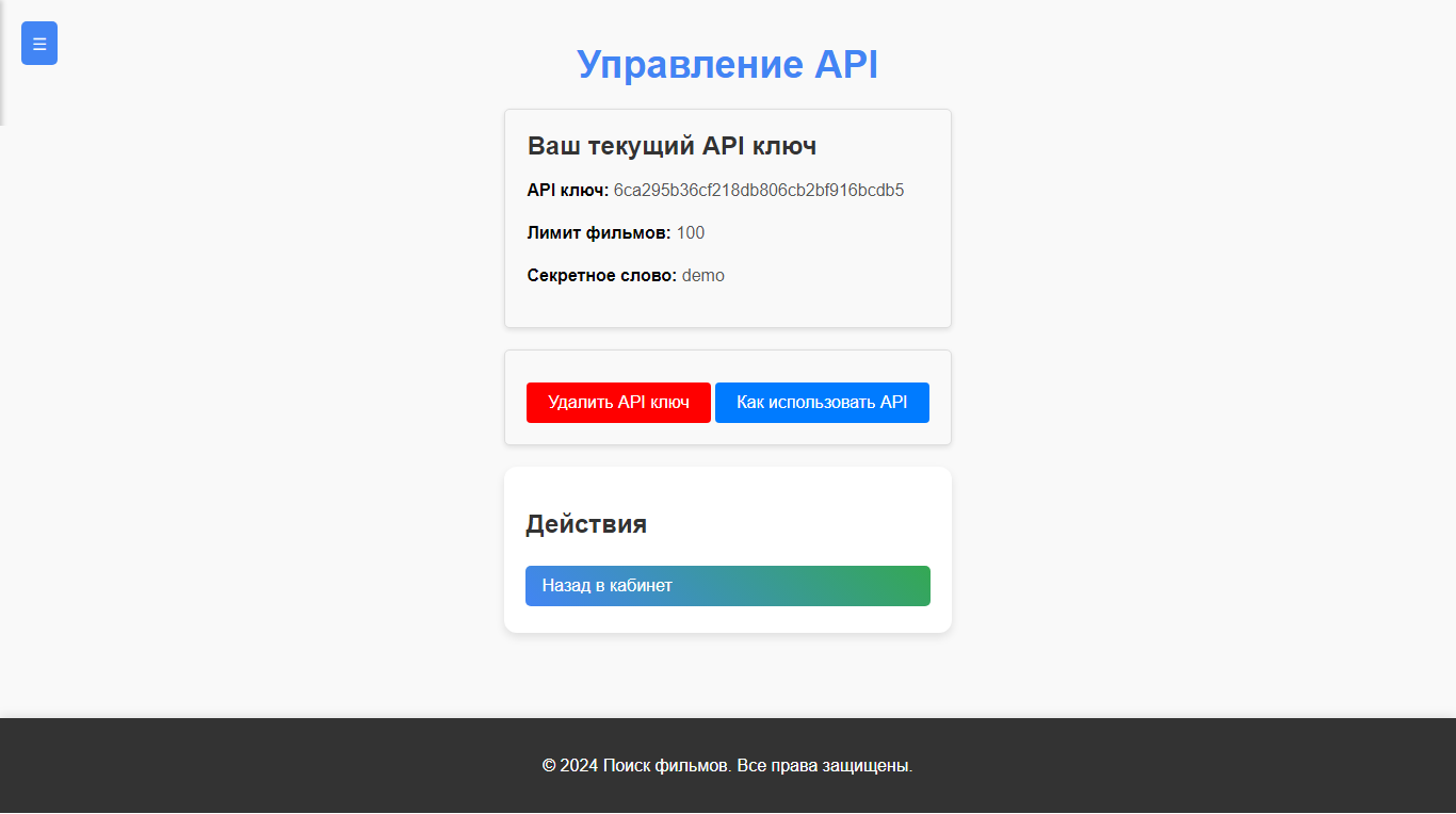 https://сайт/api_film.php?api_key=75165051468d9d44e90d0851eb588ea0&secret_word=demo json