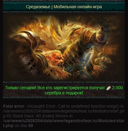 Fatal error: Uncaught Error: Call to undefined function eregi() in /var/www/u2926254/data/www/legendsofwar.ru/Modules/start.php:69 Stack trace: #0 {main} thrown in /var/www/u2926254/data/www/legendsofwar.ru/Modules/start.php on line 69
