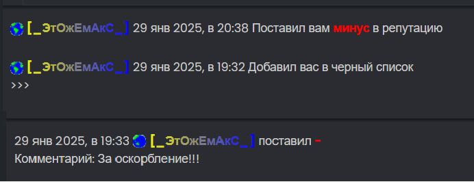 (6 фев 2025, в 13:58)Репутацию исправил. Пользователь оставивший данную оценку был заблокирован по 20 П.П.