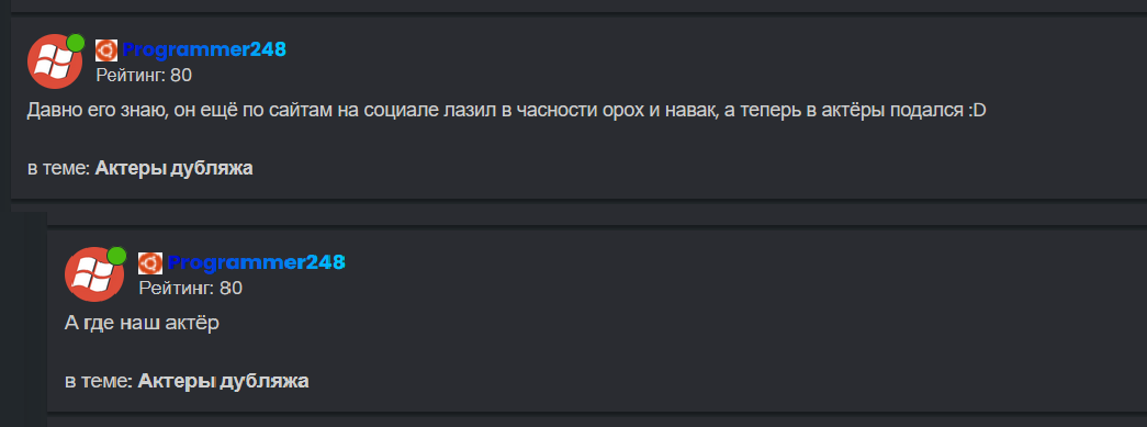 Из 2 оставленных сообщений в той теме не вижу оскорблений со своей стороны в его сторону, то есть с его стороны это умышленная порча рейтинга