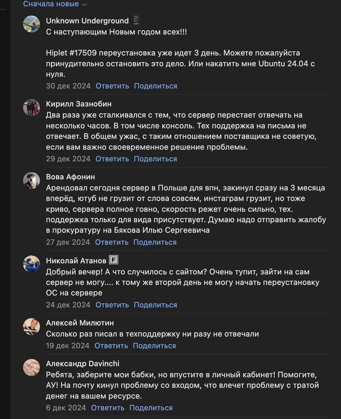 Доброе время суток! Сегодня хочу рассказать о начале сотрудничества с hip.hosting. Искал, где взять VPS с локацией в Эстонии (это было принципиально). Главным условием поиска было, чтобы хостер принимал оплату в рублях. Вбив в поиск запрос «купить VPS в Эстонии», выдало этот сайт. Цены, на первый взгляд, приемлемые. То ли цена в 4$ соблазнила, то ли глупость, ничего не проверив, оплатил. Сервер успешно активировался, выдал IP, пароль. А дальше пошли приключения. Подключиться по SSH не дает, пишет ошибку таймаута. Начал искать контакты. Нашел ТГ, там только канал, в котором закрыты комментарии. И единственный способ связаться с поддержкой — это email. Естественно, прошло уже 4 часа, ответ так и не был предоставлен. Т. е. в случае экстренных ситуаций на поддержку не стоит рассчитывать. В общем, не советую и вношу в свой личный ЧС данного хостера