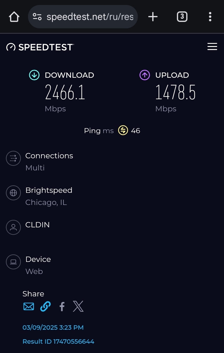Я тестил трафик в другую страну, а не внутри страны, по этому у тебя лучше циферки так как с пингом 1 это скорее всего локальный тест