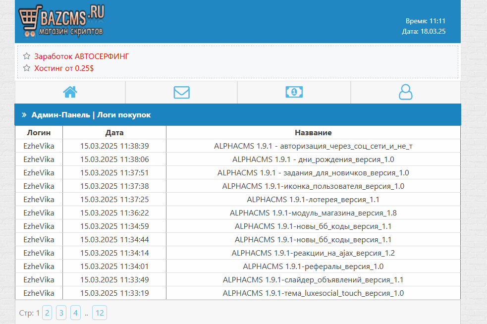открывает, вот решил этот кедала открыть сайт на АЛЬФаcms, далее он с пабла установил модули магазин и давай продовать что-то в нем, решил он скачать на bazcms.ru модули для альфы за 1 рубль, и у себя на ***