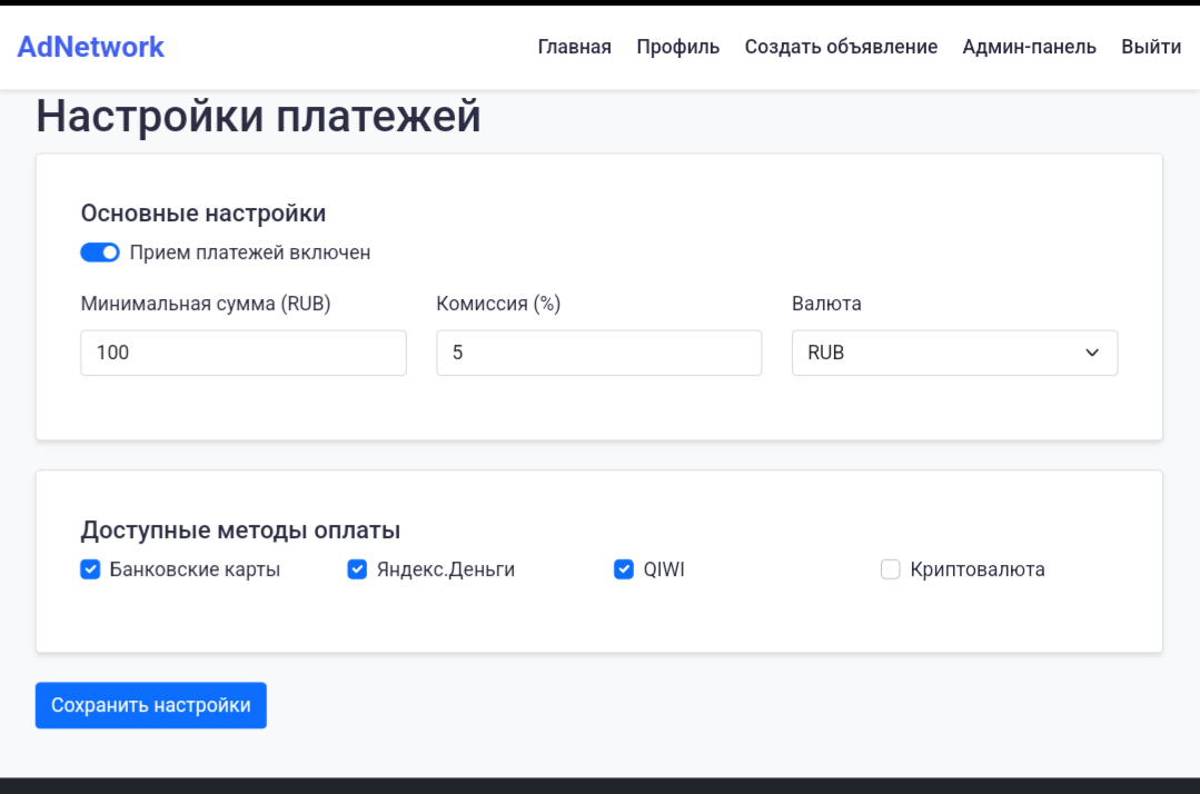 Платёжки настройки