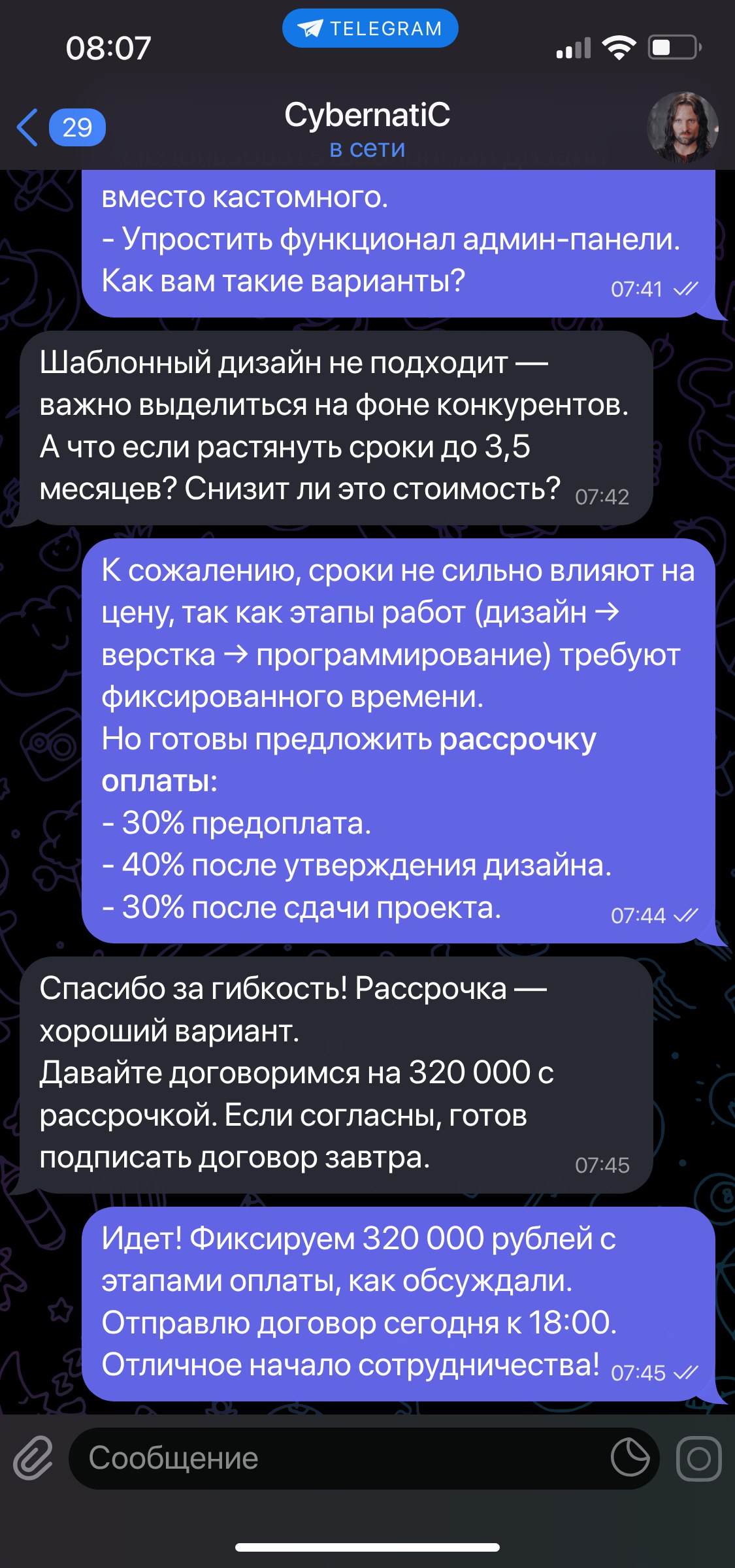 Нужно создать фейковые скриншоты переписок с клиентами.Мне нужно для подтверждения для банка который требует подтверждения того что я работаю с клиентами.Около 4 переписок с разными людьми надо