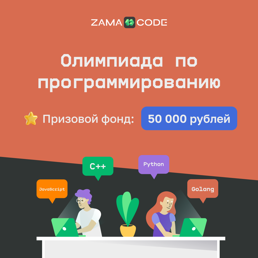 💰Бесплатная онлайн-олимпиада по программированию от ZamaCode с призовым фондом 50 000 рублей!