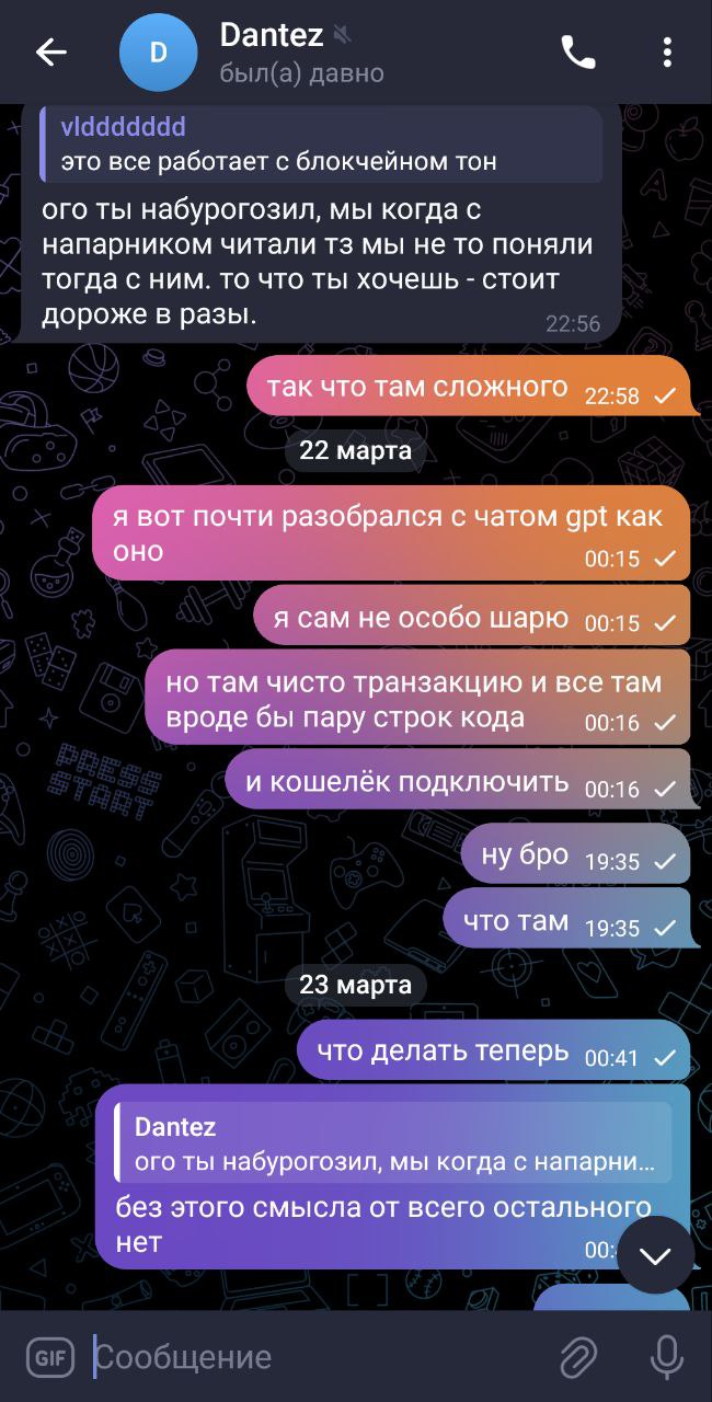 (18 июля 2025, в 9:55)Ты наверное не понял чуть смысла сообщения. Я написал , что заказчик не получил товар даже не в ЗАКОНЧЕННОМ виде или равную сумме 4000. Общая сумма заказа 6000. Возвращаешь остаток, после пишешь мне или другому администратору , при этом, заказчик должен подтвердить полный возврат средств. А то , что ты там тратил время или нет , это другой вопрос совершенно. По факту проект не сдан, личное время это уже твои заботы , не заказчика.