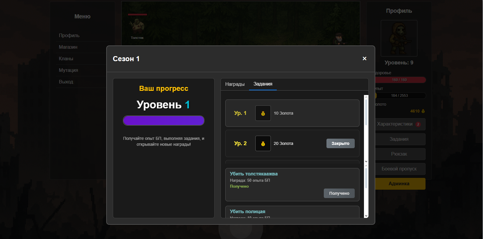 Добавили профиль персонажей.Теперь нажимая на игрока на локации,можно увидеть его профиль