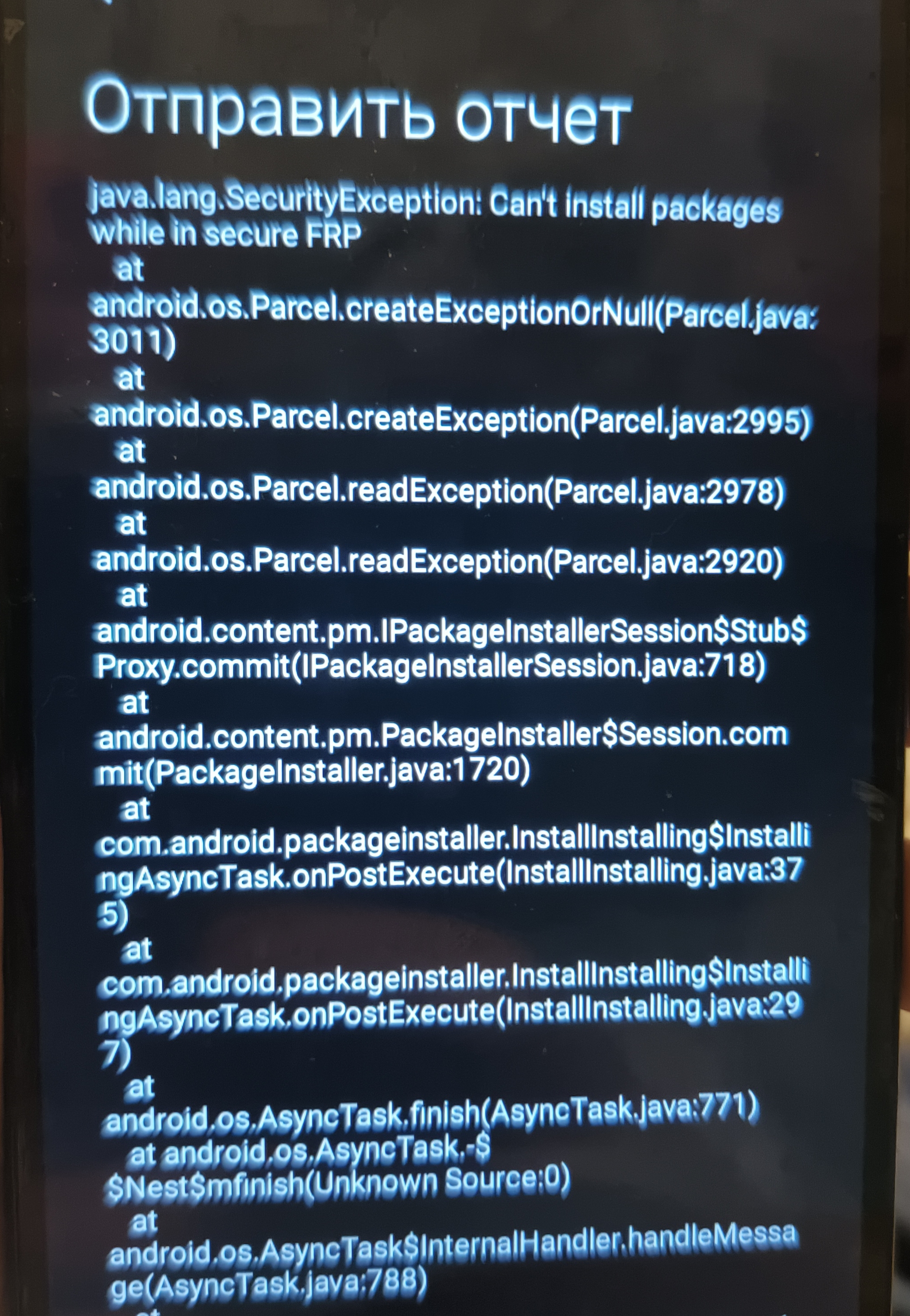 java.lang.SecurityException: Can't install packages while in secure FRP