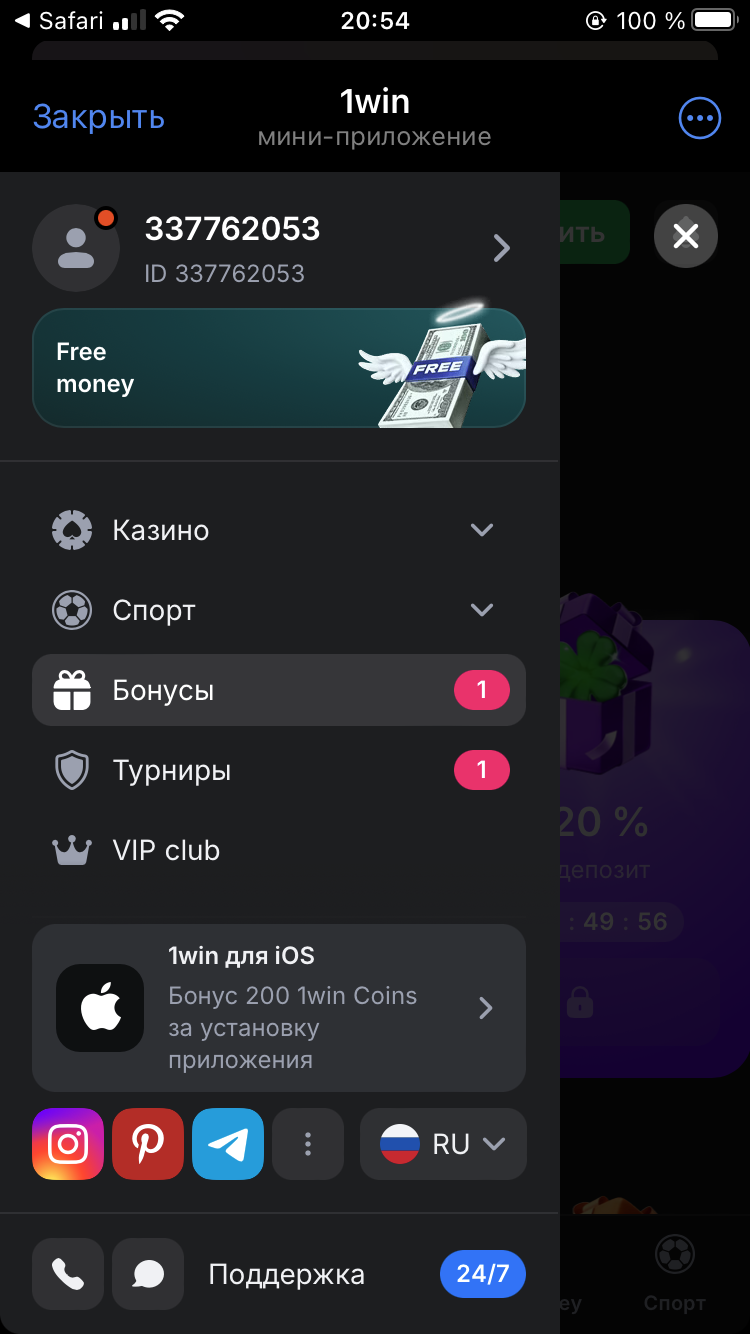 ➡Из которых 15$ вы получаете на свой счет 1win, а 8$ в награду за прохождение квеста!!