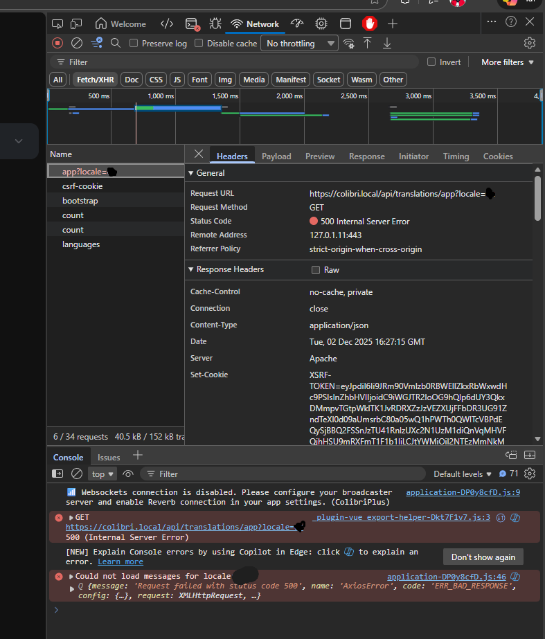 На сайте есть один по дефолту язык. Я добавил второй язык, естественно все как надо перевёл. Но в админке все работает, а на сайте - нет. Смотрю логи. Там ошибка 500.